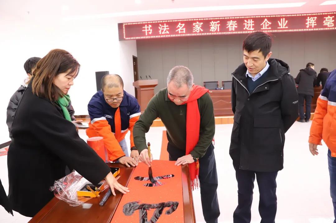 1月26日下午,蘭州新區(qū)美術(shù)家、書法家協(xié)會主席王先銀,副主席王安祥(2021年中國共產(chǎn)黨成立100周年獲得人民藝術(shù)家榮譽稱號),秘書長魏世全等6名書法名家赴石化集團同集團黨委副書記、總經(jīng)理姜錦,工會主席劉東斌,副總經(jīng)理李剛,總工程師葉得強一道為公司員工送“福”、送春聯(lián),提前送上了新春的祝福與問候。