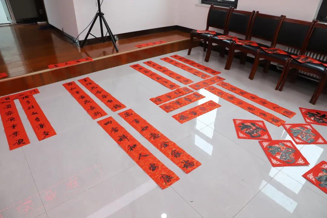 筆走龍蛇間,一張張筆酣墨飽、寓意吉祥的“?!弊?、春聯(lián)躍然紙上。集團各單位書法愛好者和員工們早早來到書寫現(xiàn)場,一邊幫著鋪紙調(diào)墨,一邊井然有序地向書法家們“求”取自己中意的春聯(lián)和美好祝福。兩個多小時,書法家們共寫出了200余幅作品,并現(xiàn)場講解釋義、互動交流,活動現(xiàn)場鋪滿了春聯(lián)和福字,形成了一片熱鬧非凡的紅色海洋。